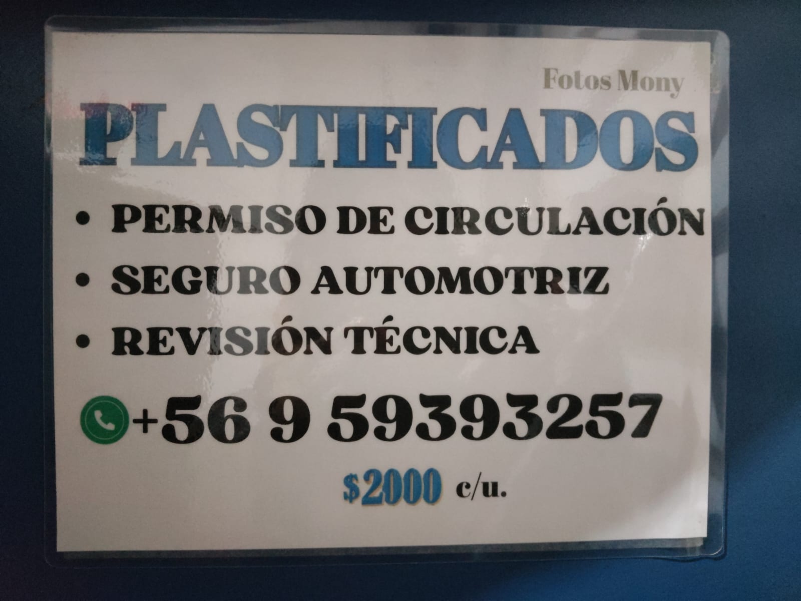 Plastificados de documentos y fotografías. El valor mínimo es de $2000.
